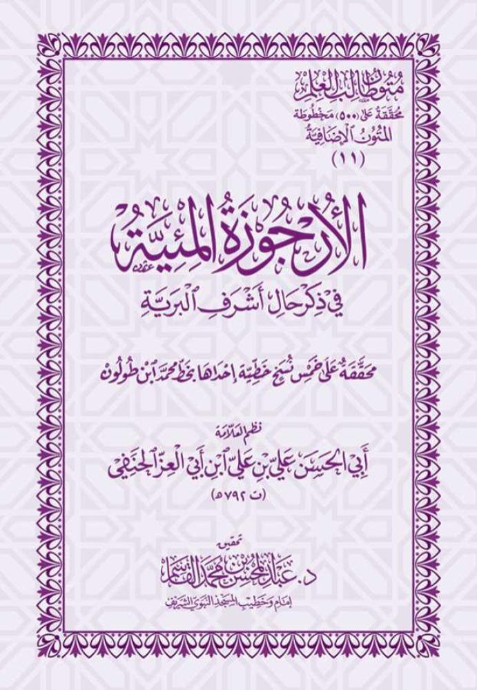 وممن أسهم في ذلك: الإمام أبو الحسن عليُّ بن عليِّ بن محمَّد ابن أبي العزِّ الحنفيُّ، فنظَم نظْماً موجَزاً جامعاً لسيرة النَّبيِّ ﷺ، من ولادته إلى وفاته، في منظومة من مئة بيتٍ من بحر الرَّجَز، سماها: «الأُرجوزة المِئيَّة في ذكر حال أشرف البرية».